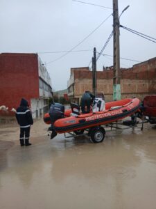 وفي إطار الاستجابة الاستعجالية، تم تفعيل مخطط أمني ميداني لمواجهة تسرب المياه إلى نحو 23 منزلاً بحي الملحة، حيث جرى تسخير ترسانة لوجستيكية مهمة شملت جرافات وقوارب مطاطية تابعة للوقاية المدنية لإجلاء المتضررين. وقد اتسمت العملية بتجاوب وانضباط كبيرين من المواطنين الذين فضل أغلبهم اللجوء إلى أقاربهم، فيما سخرت مصالح العمالة والمجلس الإقليمي حافلات مخصصة لنقل الأسر نحو مراكز الإيواء التي تم تجهيزها بالكامل.