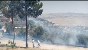 شبت النيران قبل لحظات بغابة الشاطو بوسط مدينة تاونات ، حيث شوهد الدخان يتصاعد بكثافة في المنطقة .