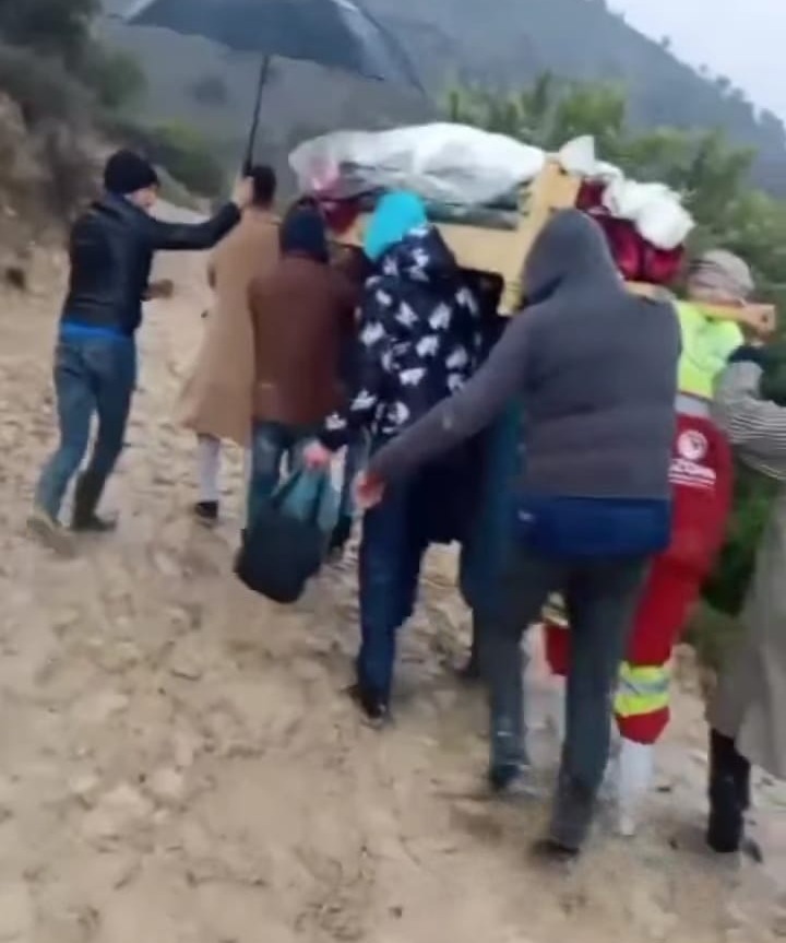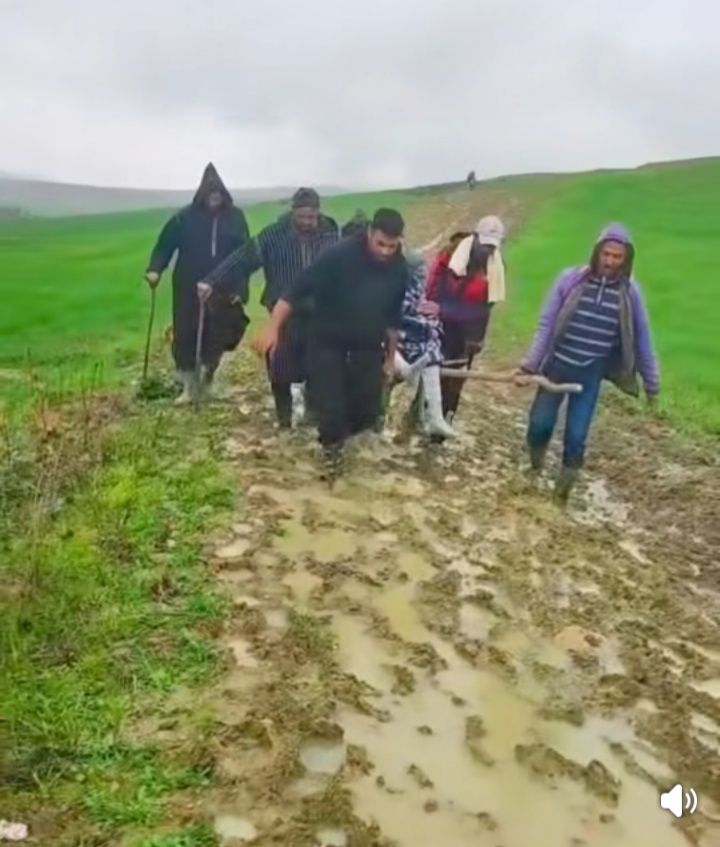 تازة.. بسبب العزلة و هشاشة الطرق نقل مريض على محمل الموتى بجماعة الربع الفوقي