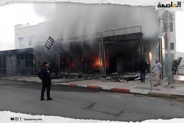 تاونات..حريق ضخم يلتهم مطبعة ومقهى وشققًا سكنية