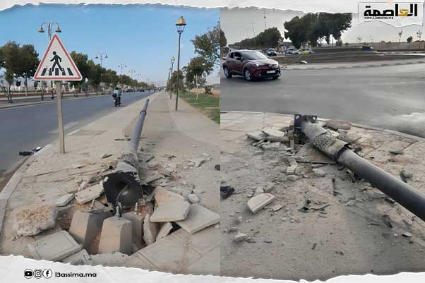 سقوط عمود كاميرات مراقبة قرب الطريق السيار بفاس بعد حادث سير.. والمصالح المعنية غائبة